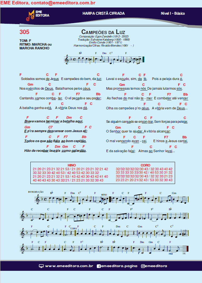 Harpa Cristã Cifrada com Partituras (oficial da Editora EME).